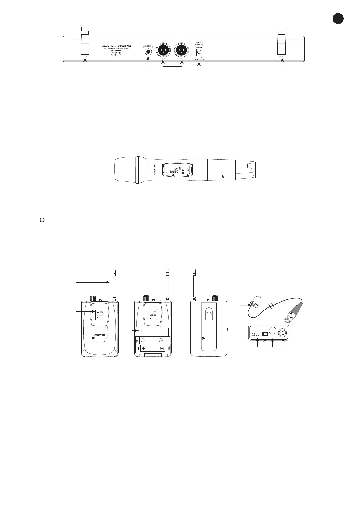 1.- ANT A/B : des antennes pour la réception des signaux des microphones des canaux A et B avec