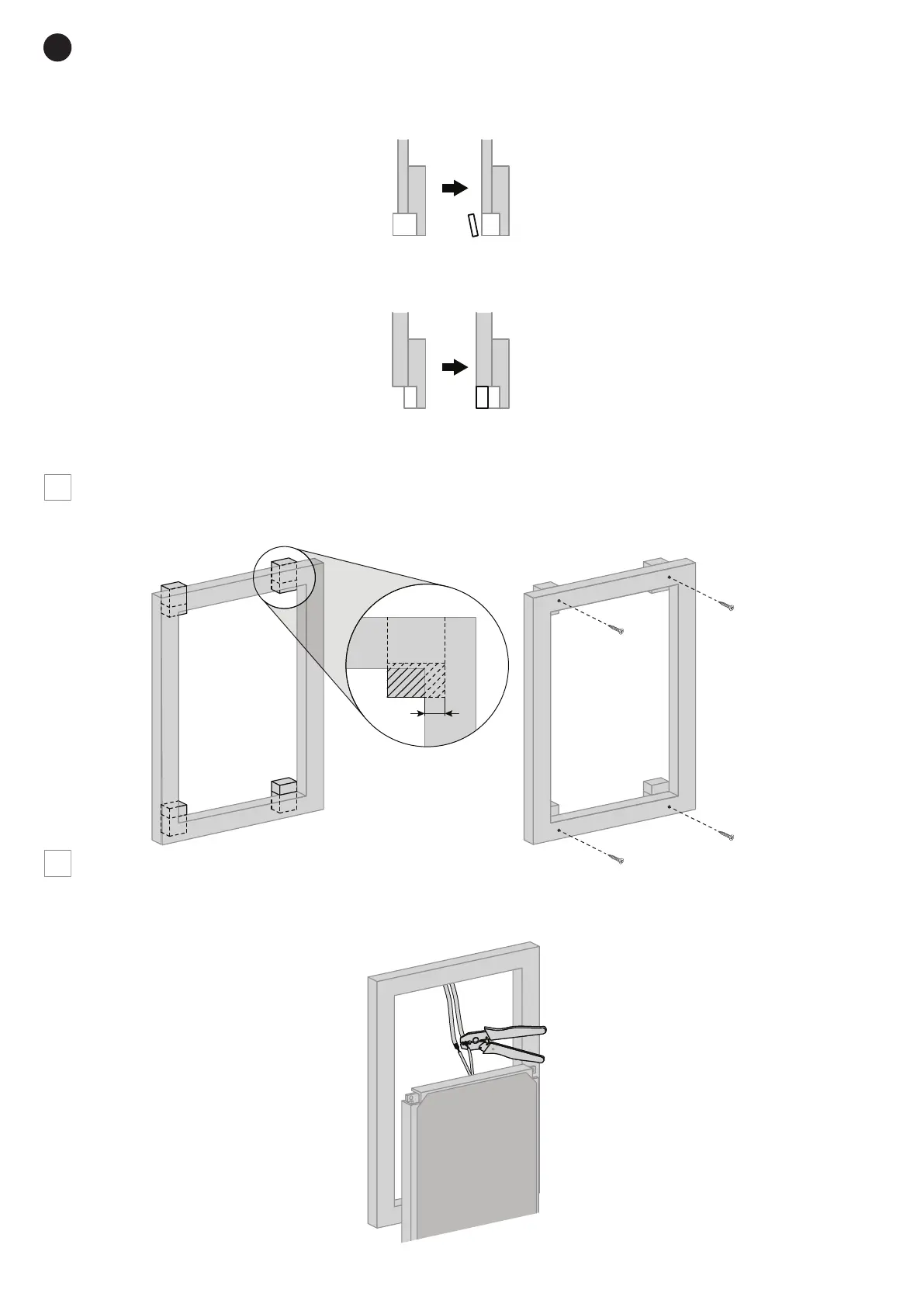 Fixar cada cunha num dos cantos do orifício utilizando um parafuso, garantindo a zona da borracha de