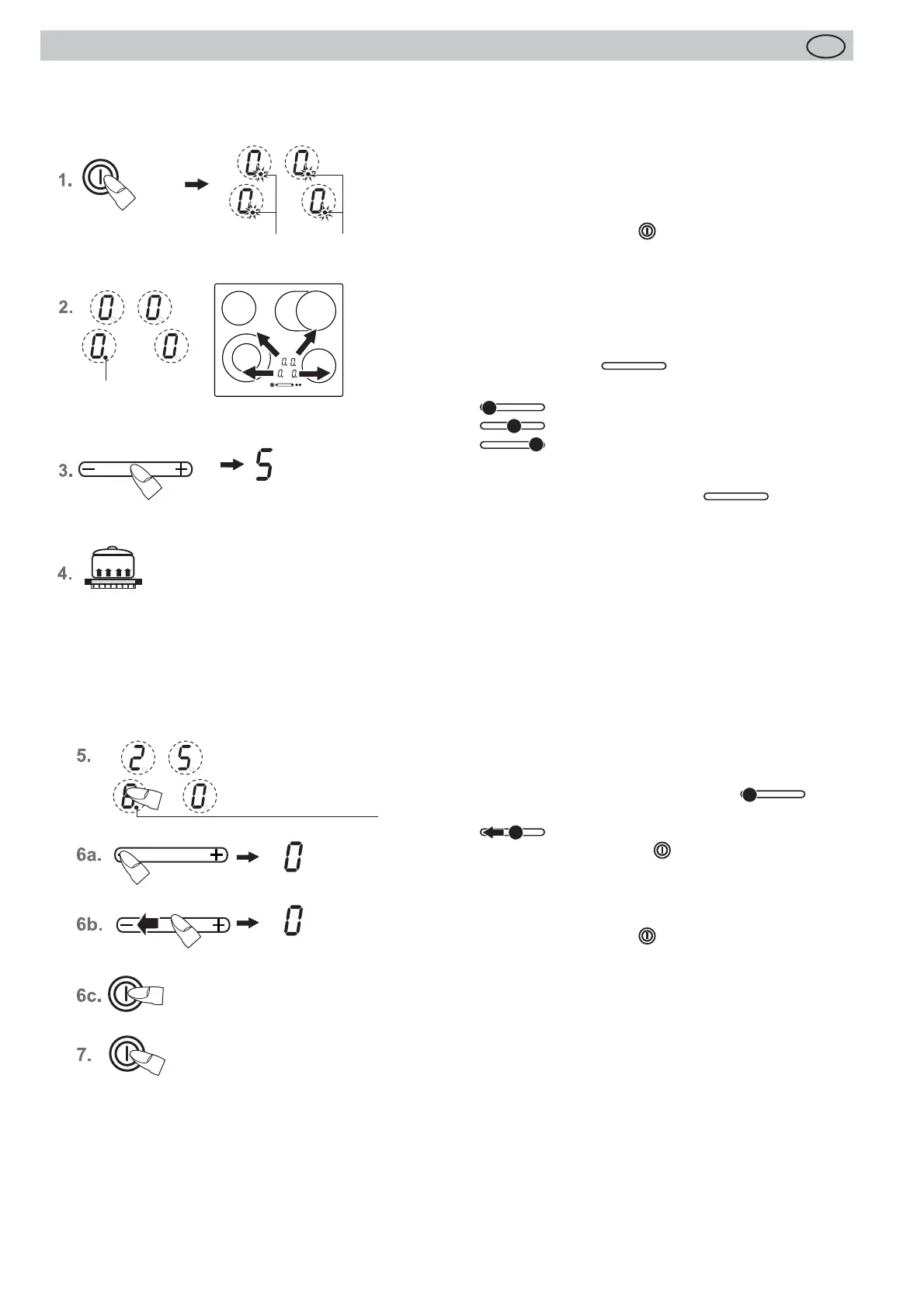 7. Press the ON/OFF key . The hob will be completely
