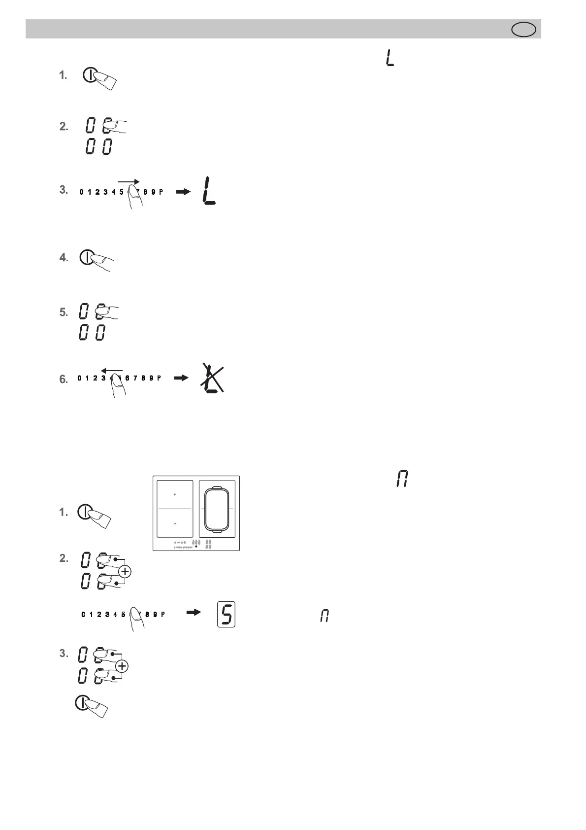 power setting indicators will show an L for child lock, the
