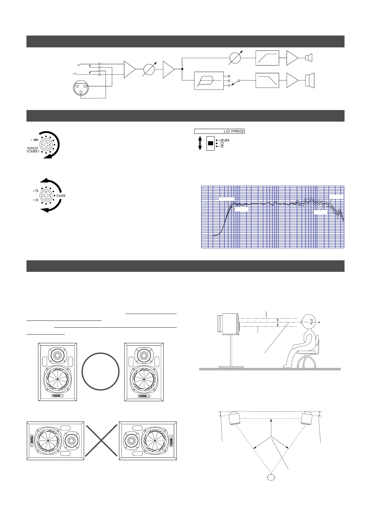 • The low frequency filter switch and tweeter level