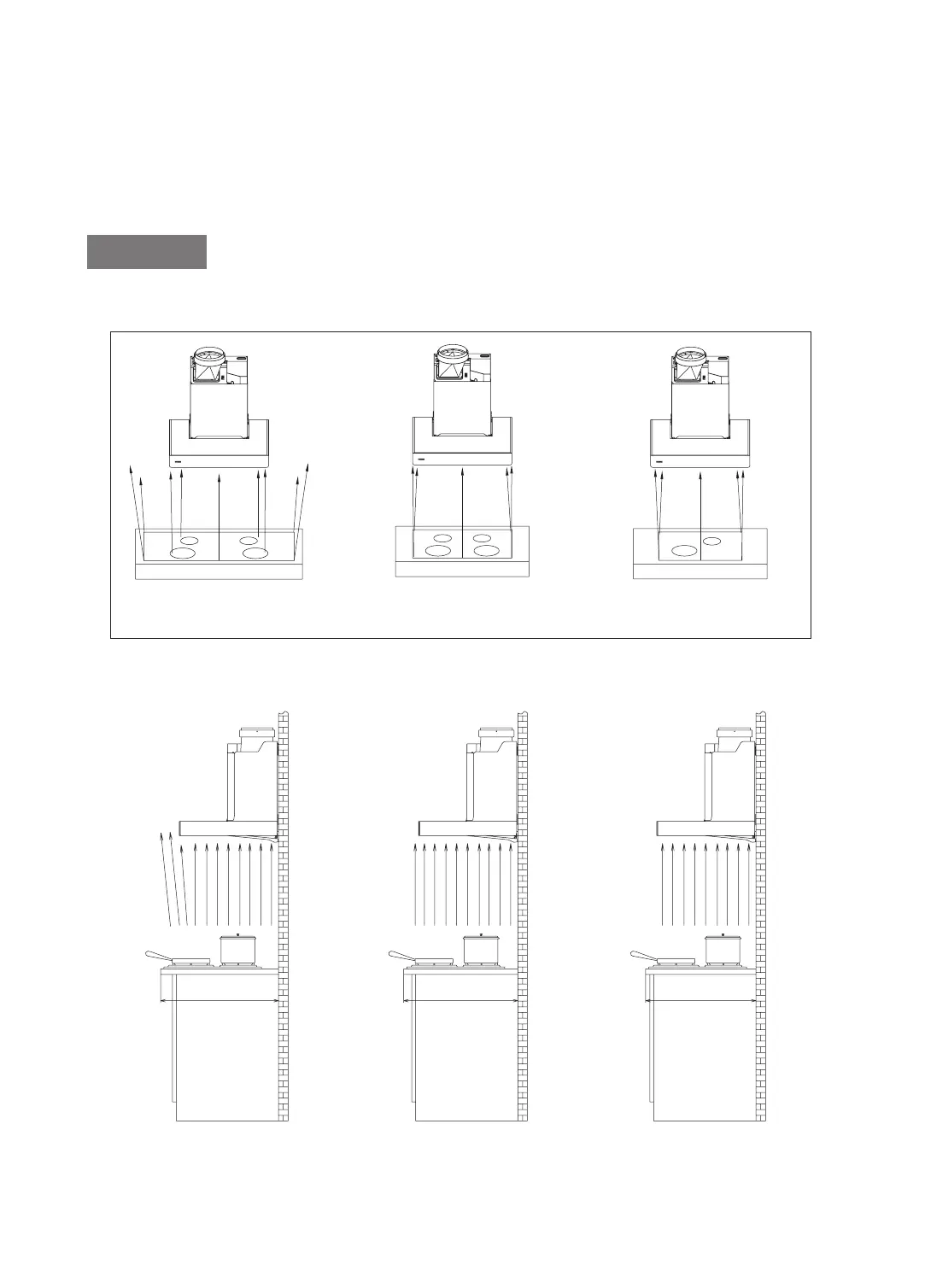 油烟机尺寸比烹饪区小 油烟机尺寸与烹饪区相同 油烟机尺寸比烹饪区大