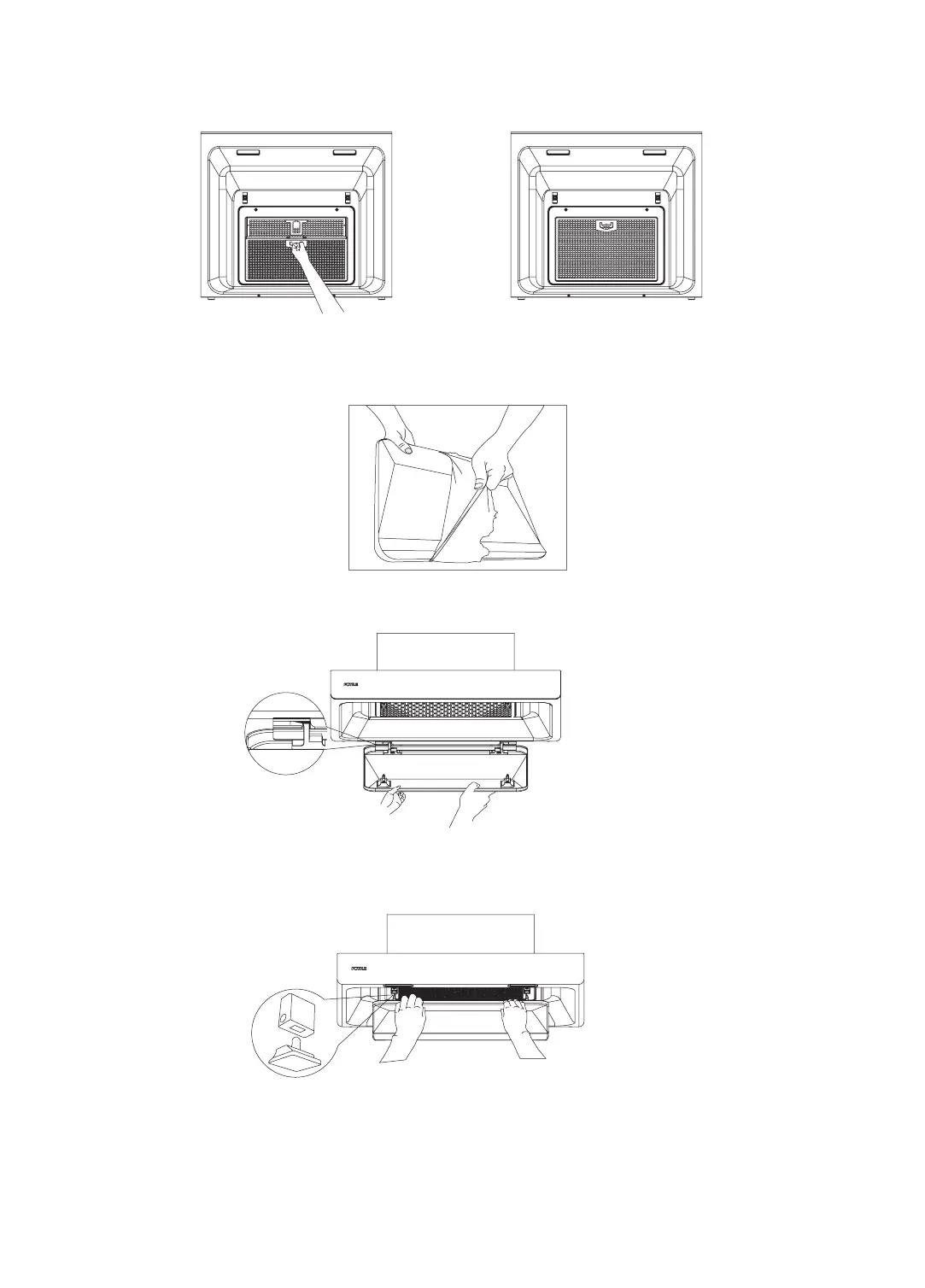 )双手紧握蝶翼板前侧,将蝶翼板后侧的左右挂钩,放入集烟罩底部的挂钩架内;