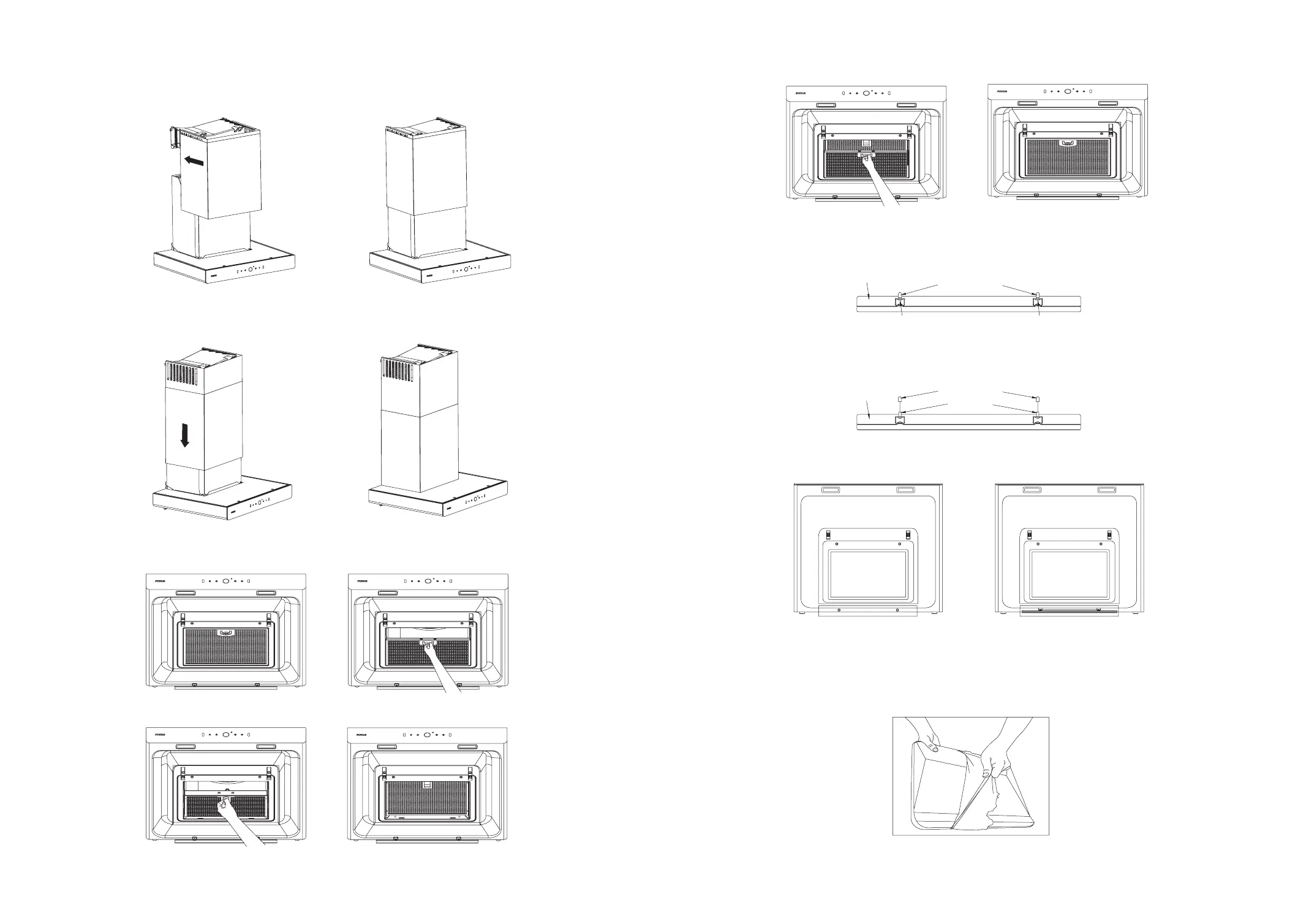 3) Take up the fan cover and the decorative hood at the same time, hang the decorative hood on the