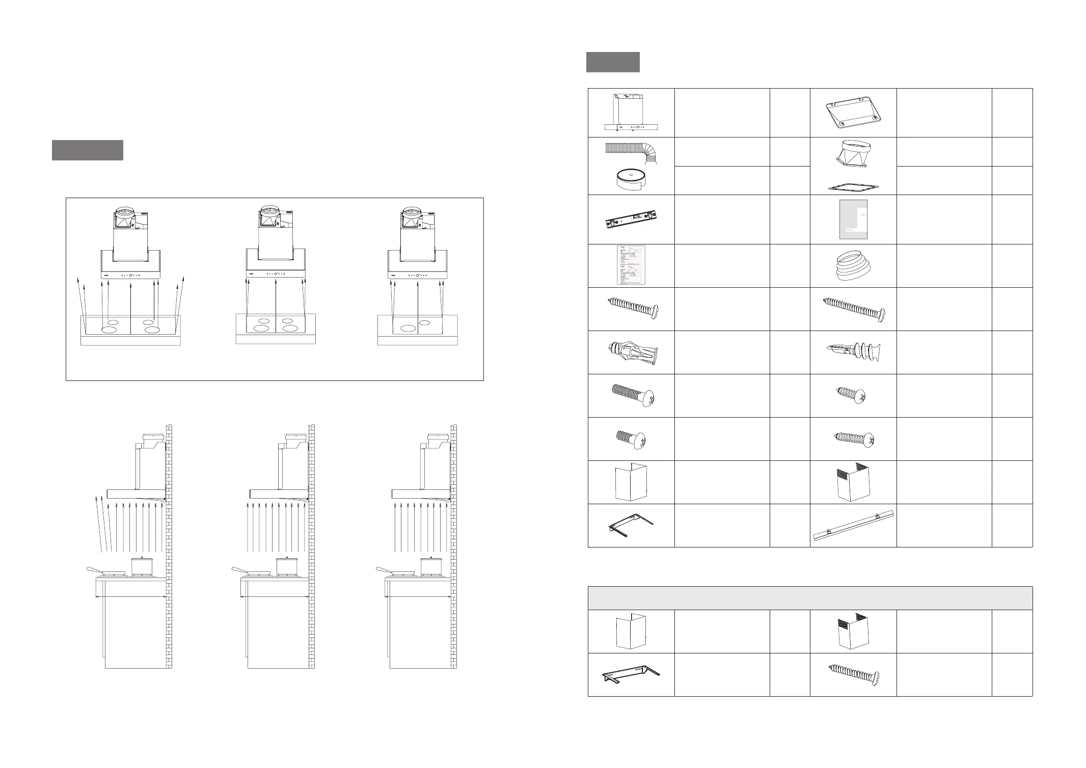 油烟机尺寸比烹饪区小 油烟机尺寸与烹饪区相同 油烟机尺寸比烹饪区大