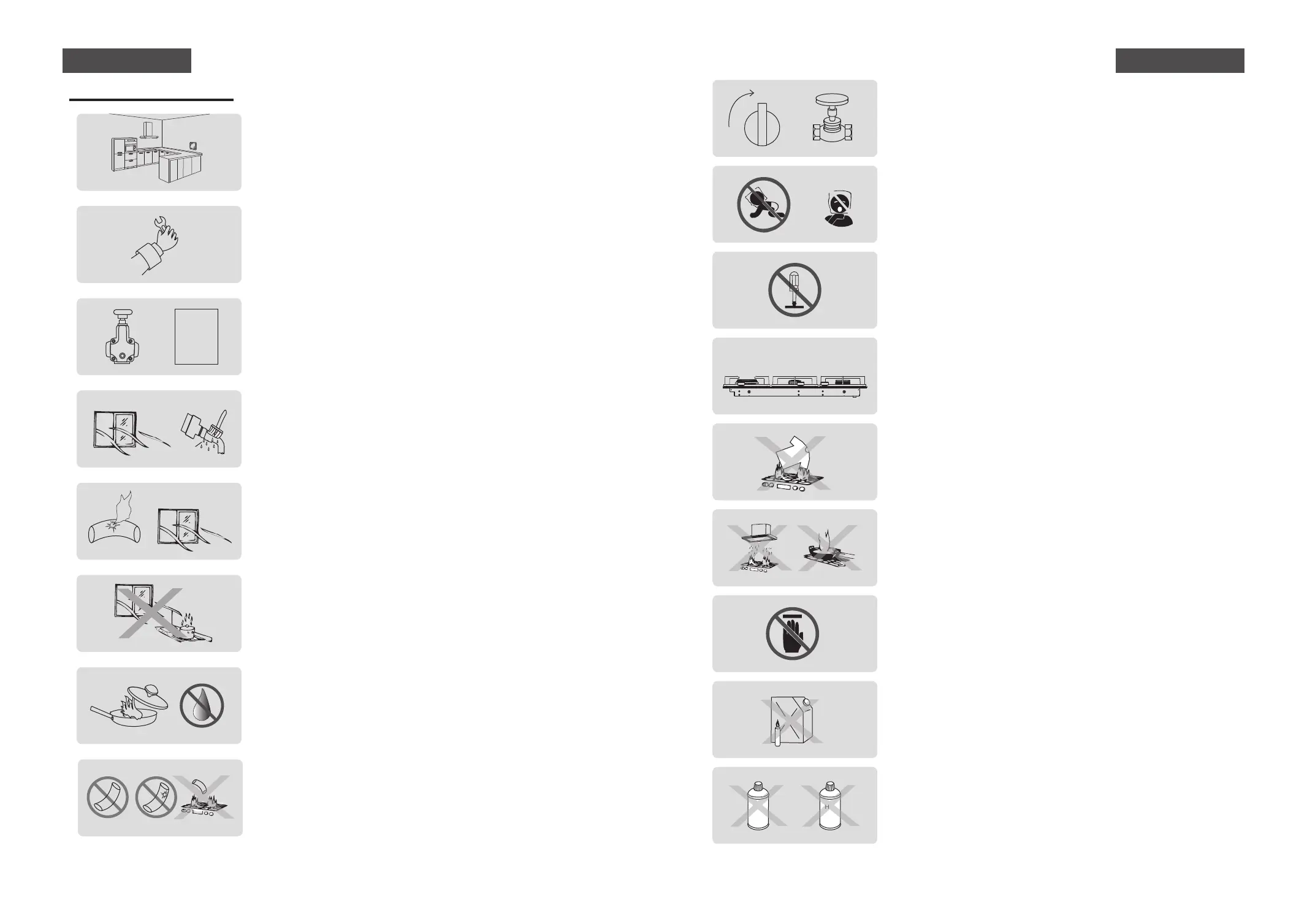 切勿在犯困时操作燃气灶,或在操作燃气灶时离开现场。切勿将