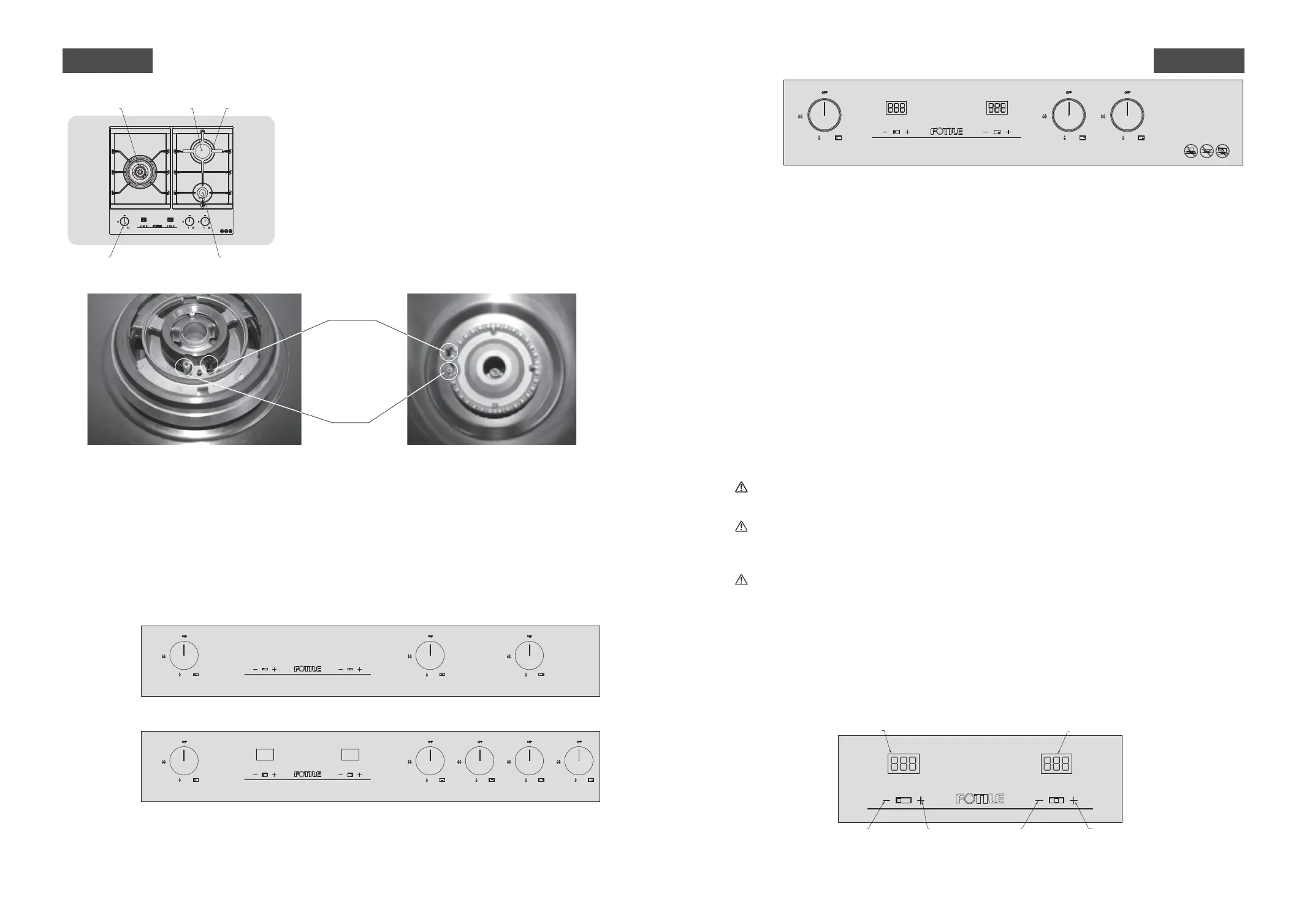 使用旋钮来控制燃烧器。本灶具配有电子点火装置,仅需将旋钮按压到底并逆时针旋转90°,
