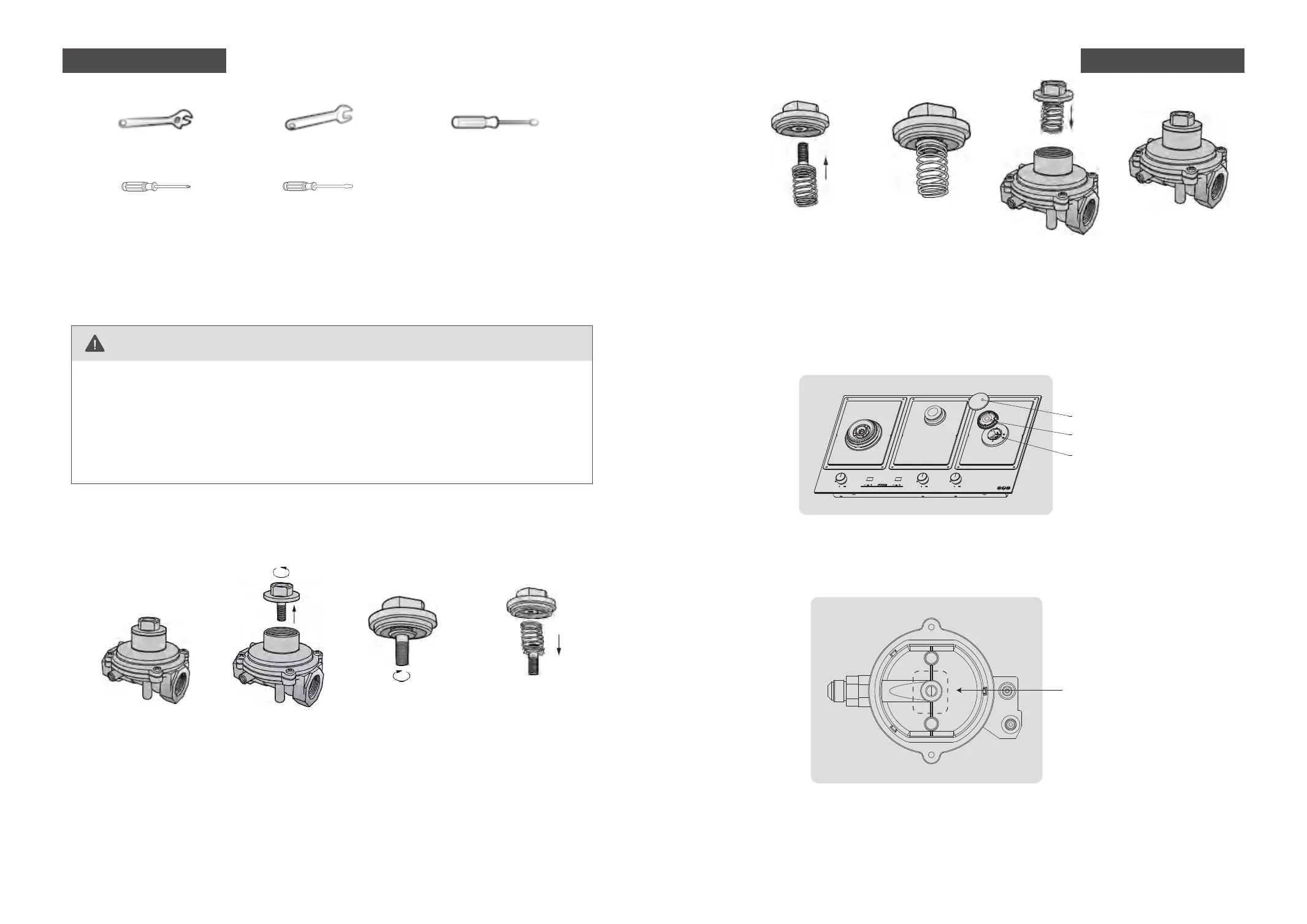Do not operate the cooktop burners when using LP gas before converting the pressure regula-