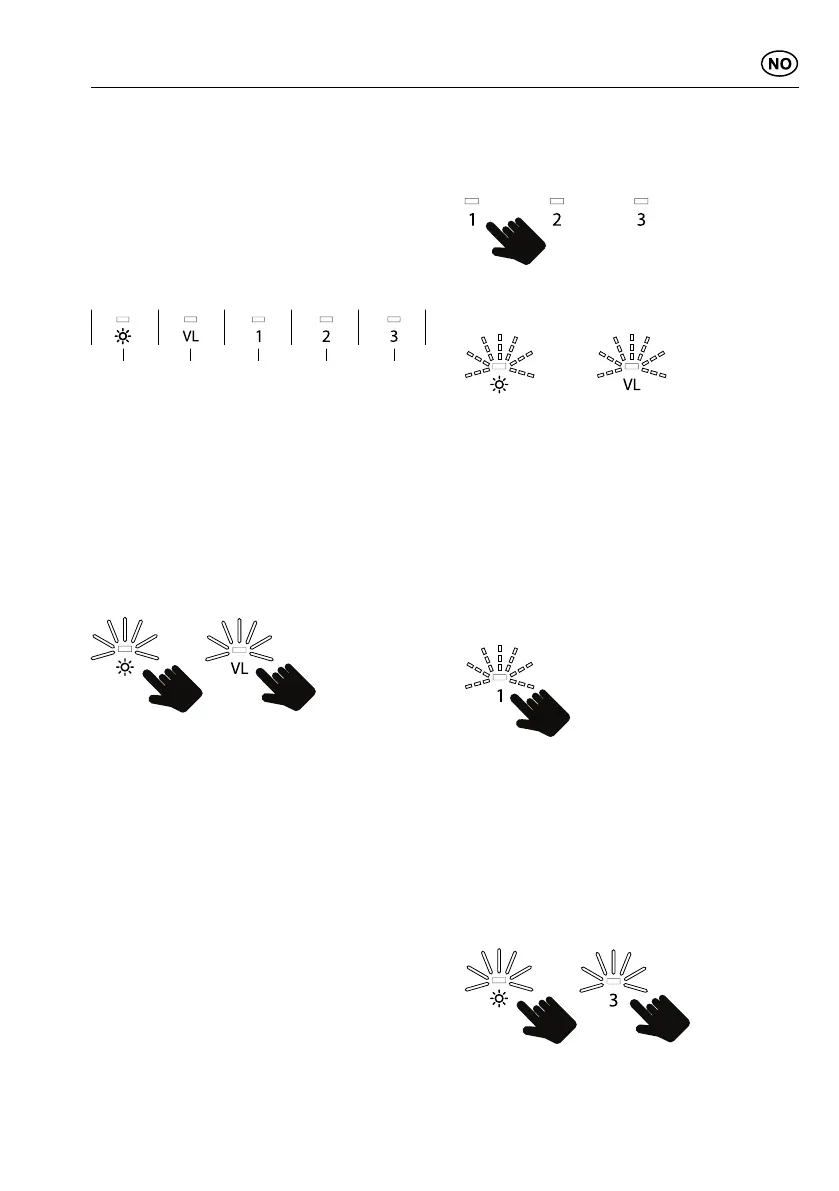 B i ca. 5 sekunder. Indikeringslampene ly-