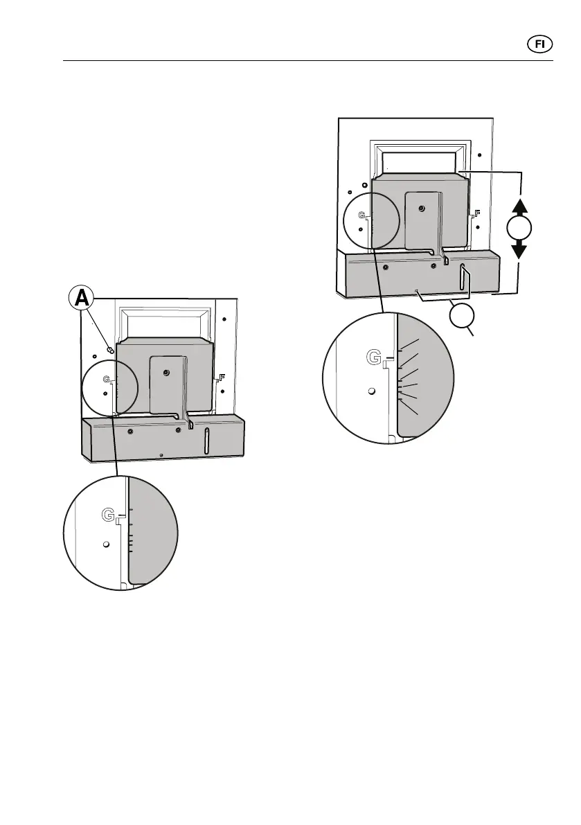 Peltiluukun asennon G1 - G6 merkinnät vas-