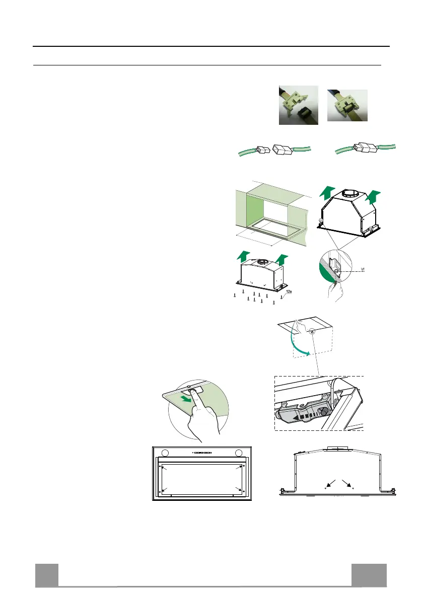 • Plaats de afzuigkap tot deze vasthaakt op de zijsteunen