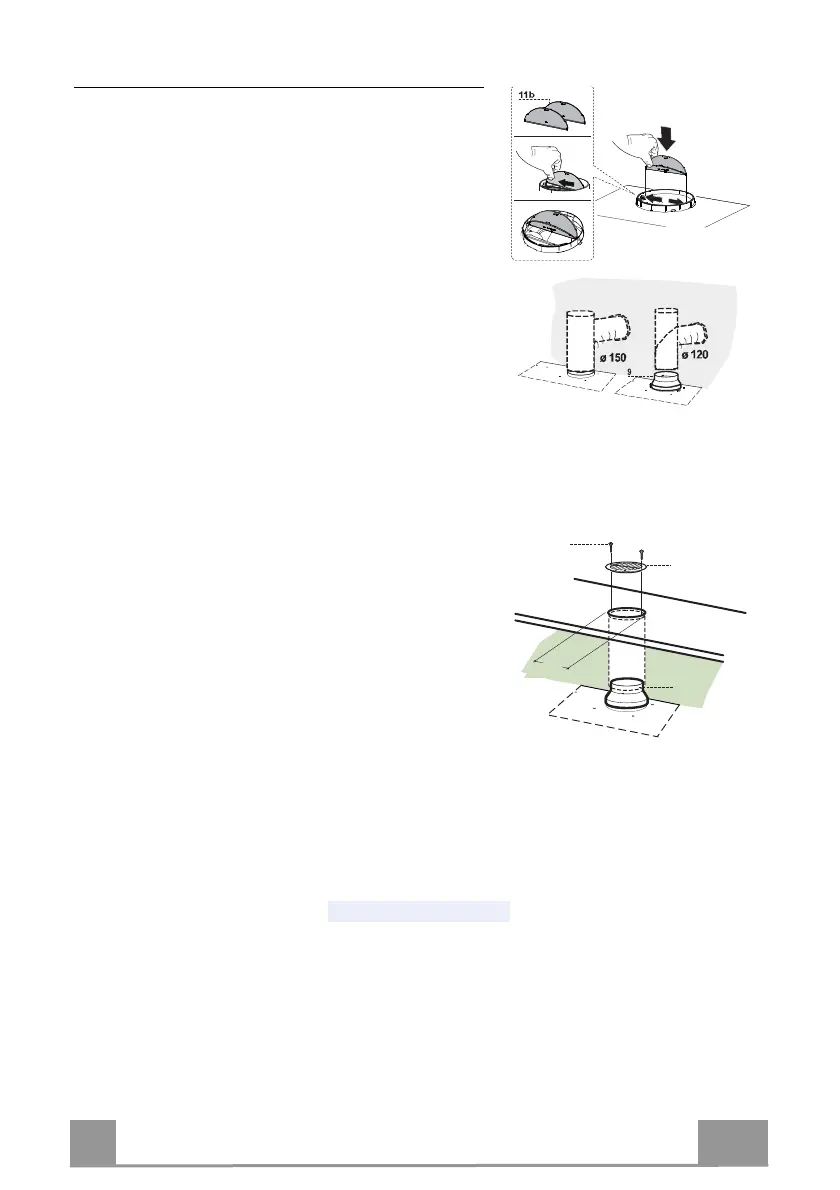 • Introduceți clapetele 11b pe pieșirea corpului hotei.
