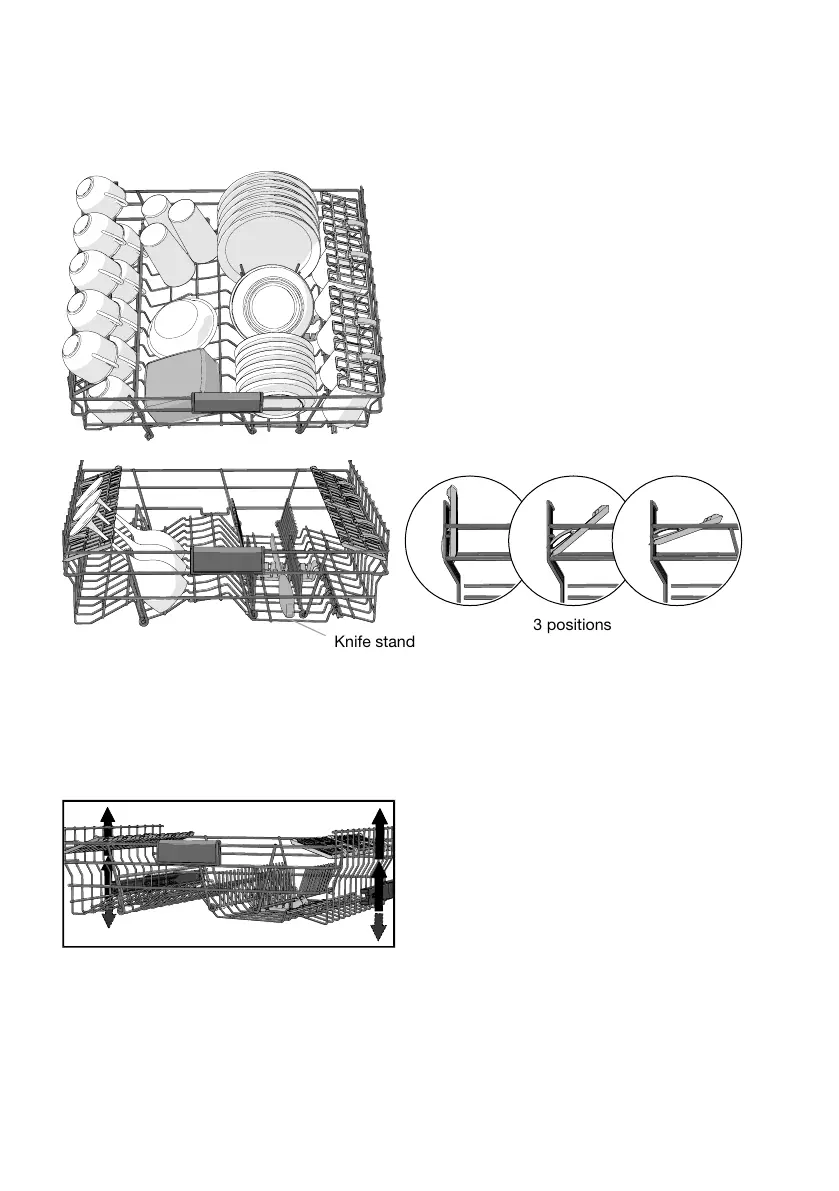 Place glasses, cups, bowls, side plates and saucers in the upper basket. All dirty surfaces should face