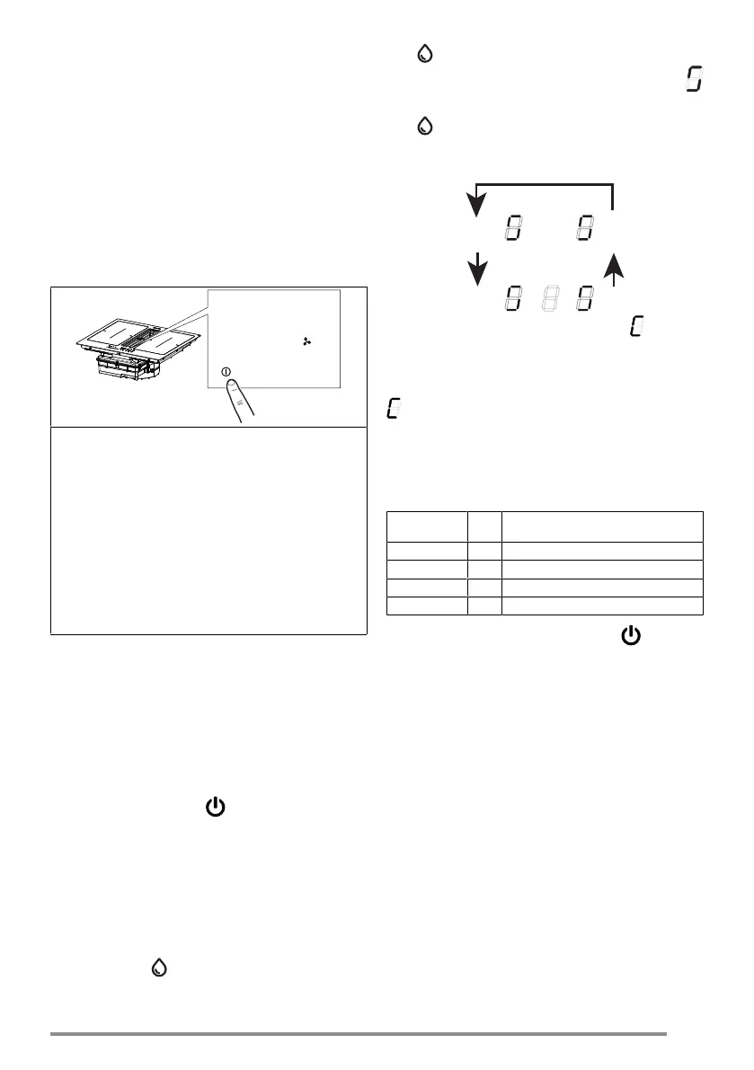 Ocağı açmak ve işlevlerini etkinleştirmek için Açma/Kapat-