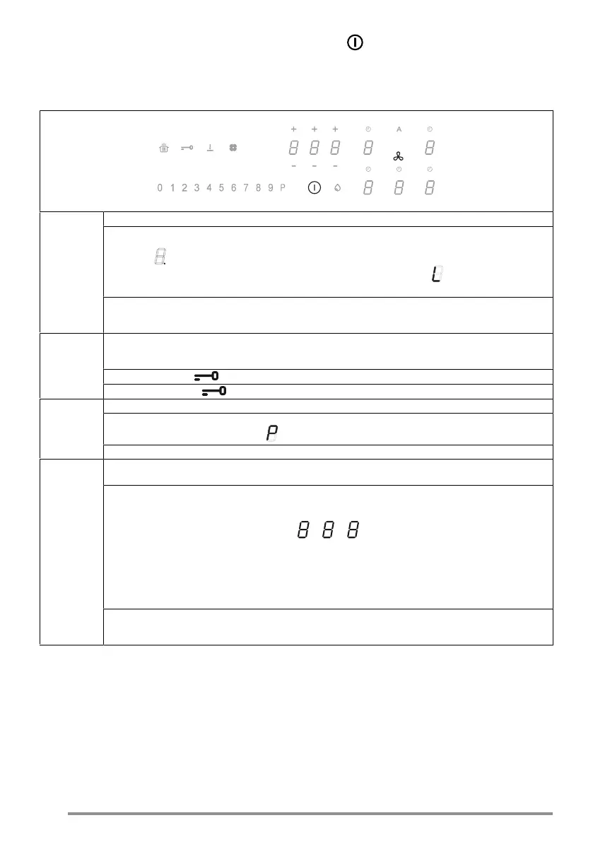 drücken. Wenn kein Topf auf dem Kochfeld steht, 3 Sekunden lang eines der 5 Digits (nicht sichtbar) neben