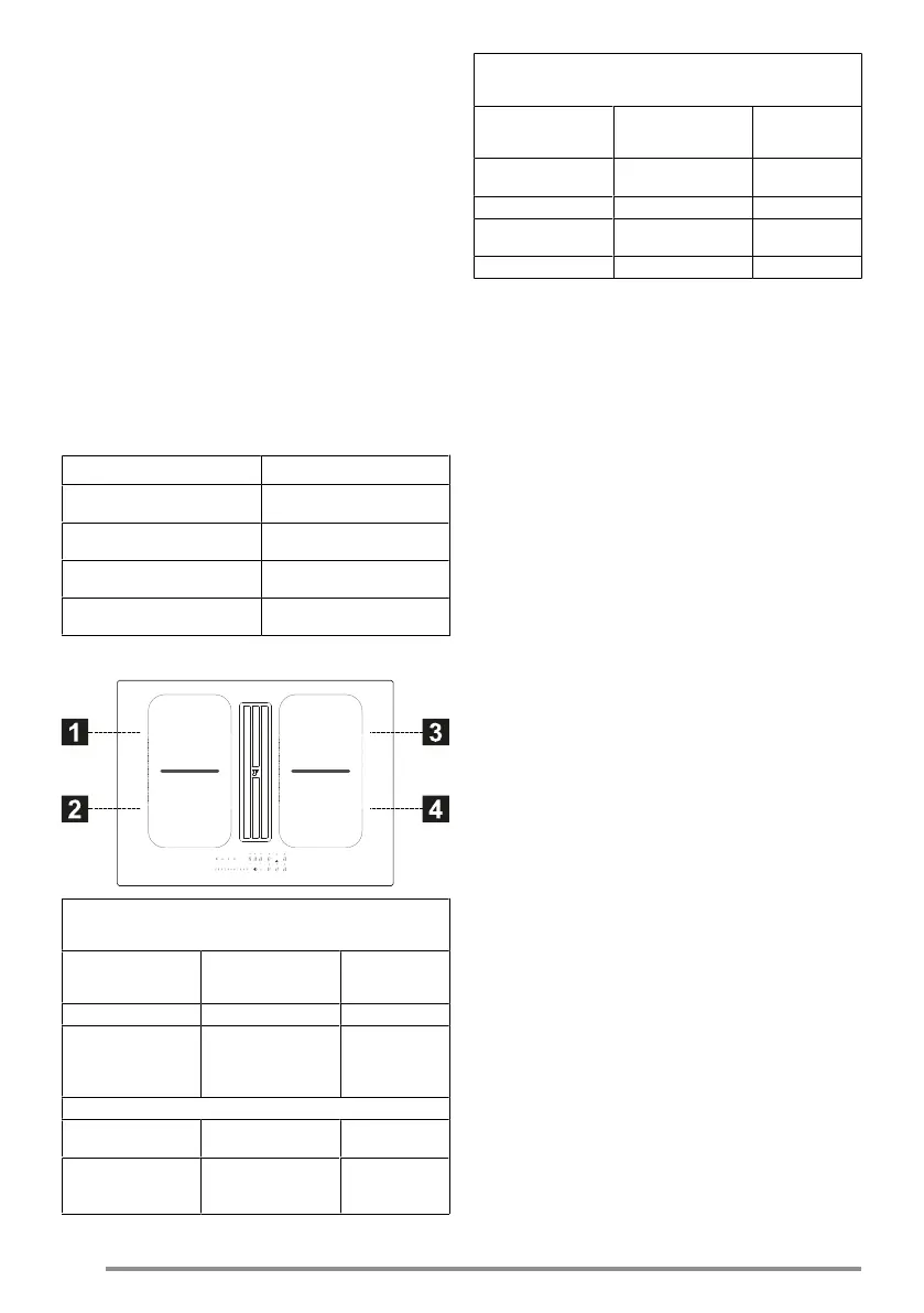 1,2 Zone de cuisson flexible 1 + 2 En pont