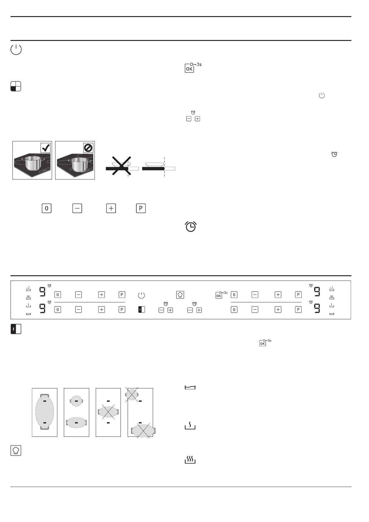 Press the “+“ or “−“ button to set the desired time on the cooking zone in use.