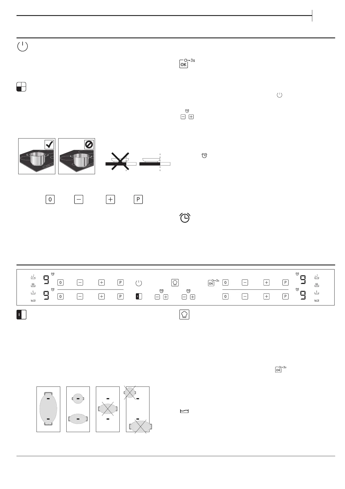 Pulse el botón “+“ o “−“ de la zona de cocción requerida para activarla y ajustar
