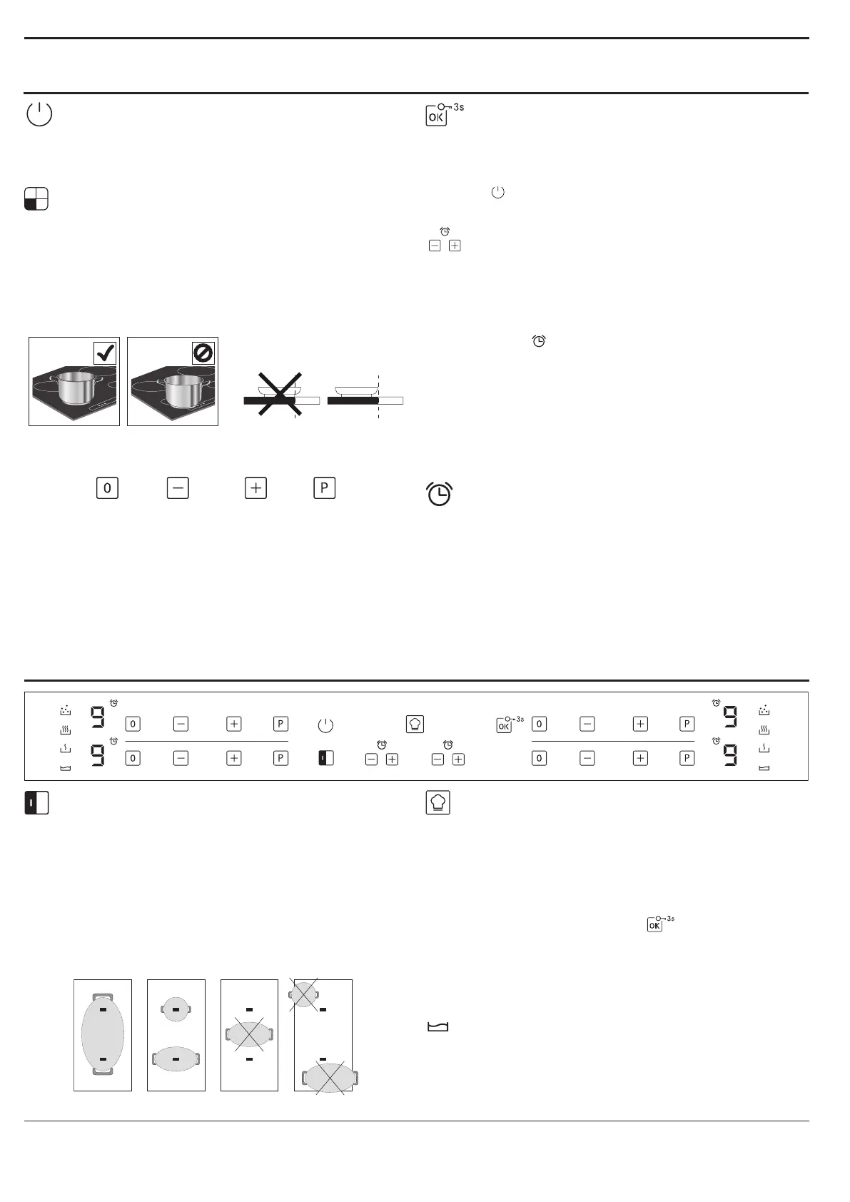 Prima o botão “+“ ou “−“ para denir o tempo pretendido na zona de cozedura