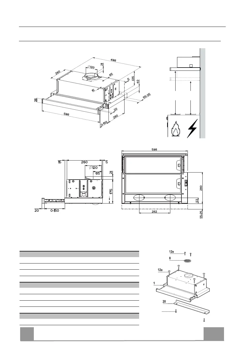 1 1 Emhætte, komplet med Styring, lys, blæser, filtre