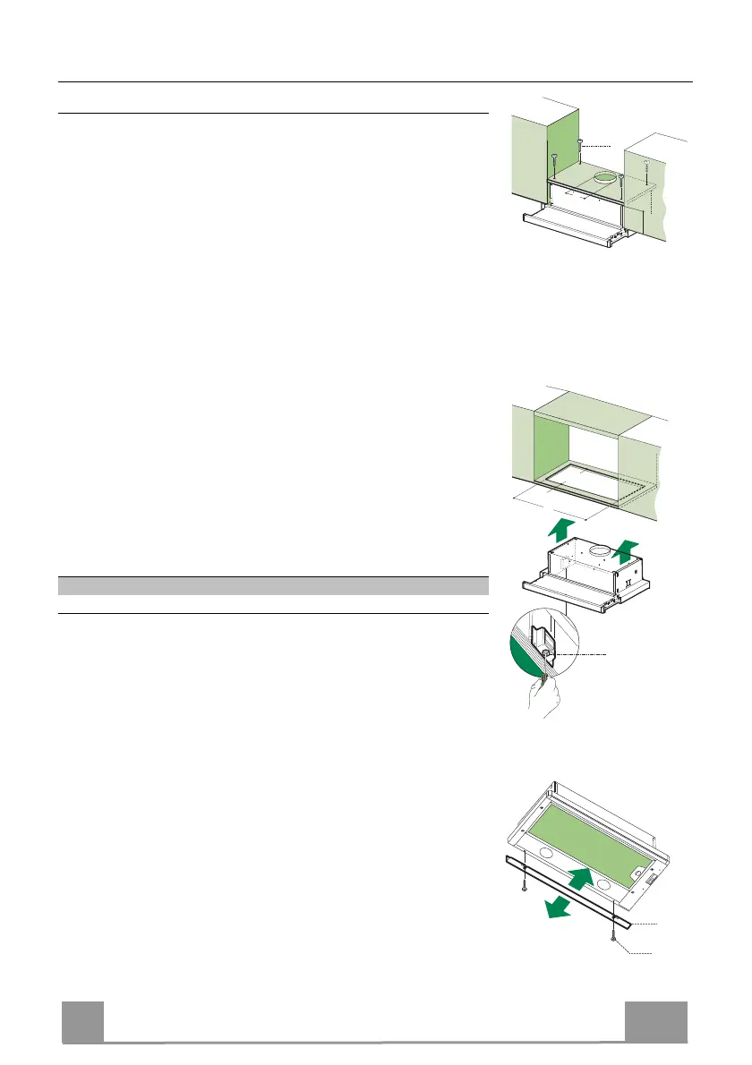 • Festið með því að herða skrúfurnar Vf undir háfnum.