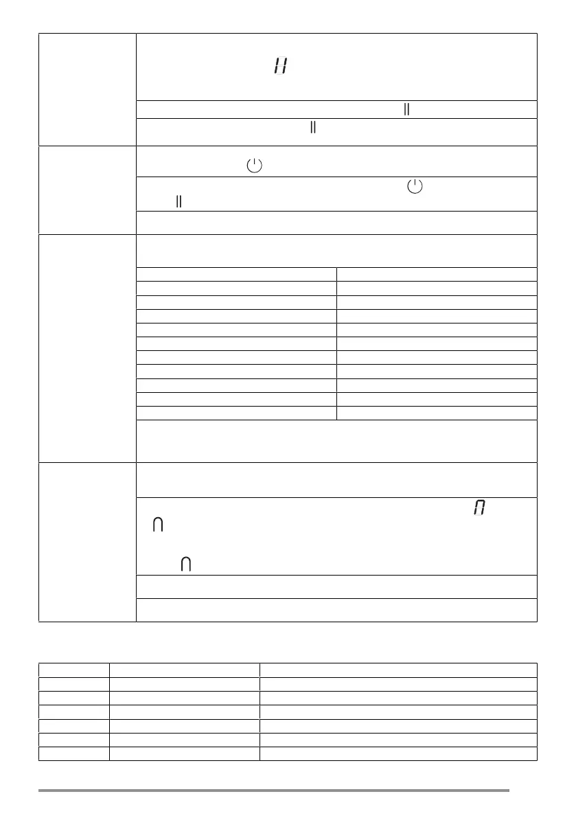 Denna funktionen tillåter att sätta i paus/återaktivera vilken aktiverad funktion som helst på spishäll-