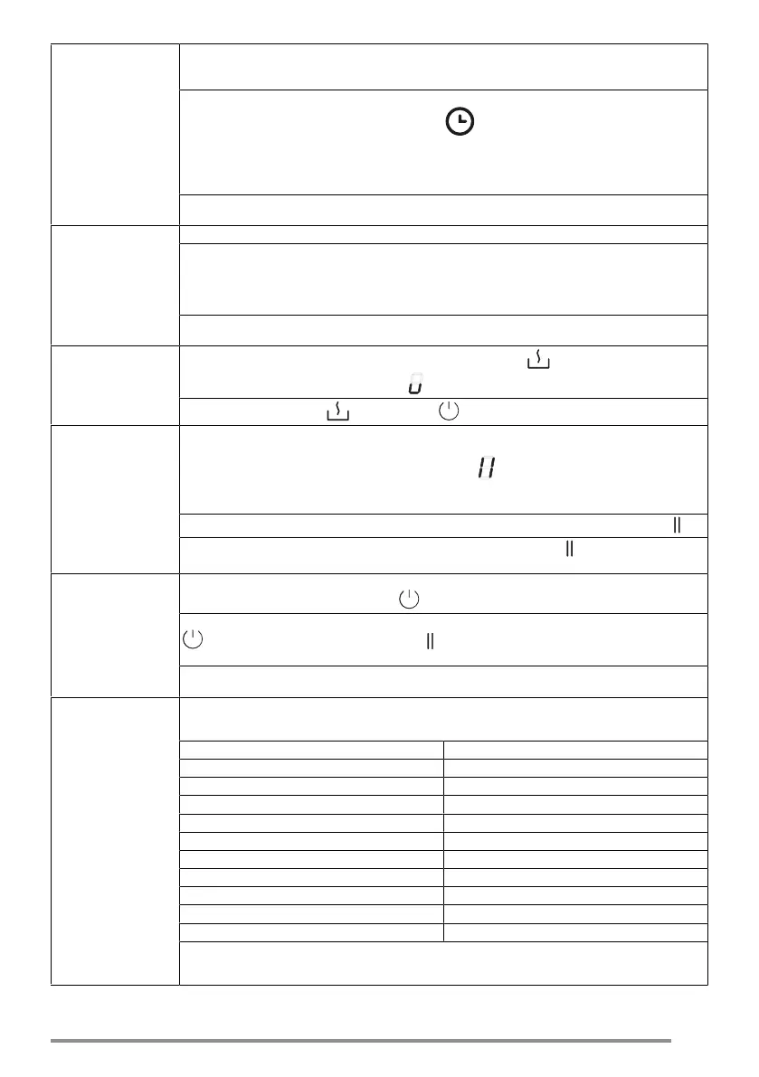 Ta funkcja pozwala na ustawienie w pauzie/wznowienie każdej aktywnej funkcji na płycie kuchen-