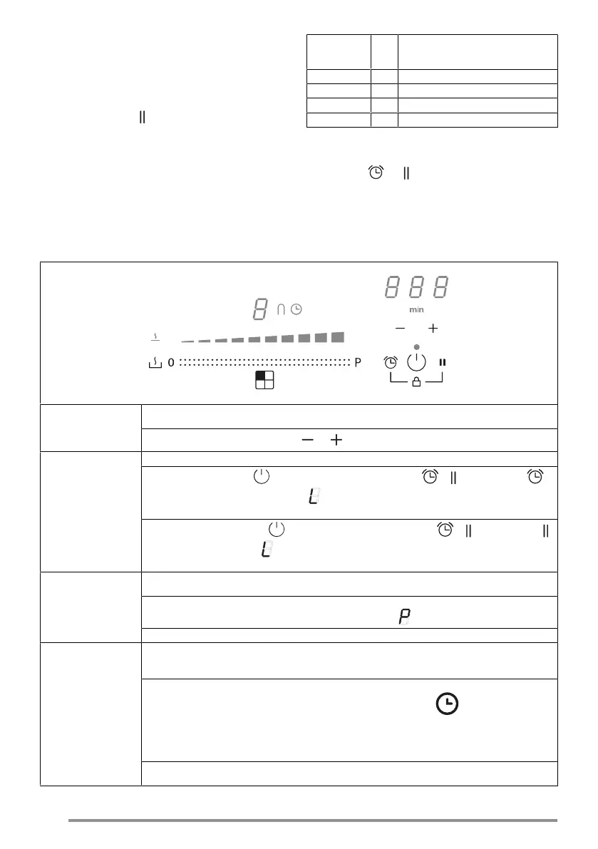 puyer sur «+» et sur «-» pour régler le temporisateur. Le symbole de la zone de cuisson