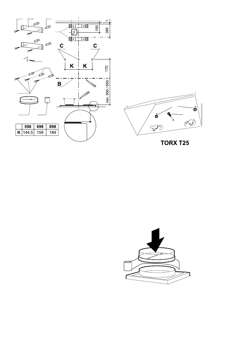 Merkitse seinään ruuvinreiät C liesituuletti-
