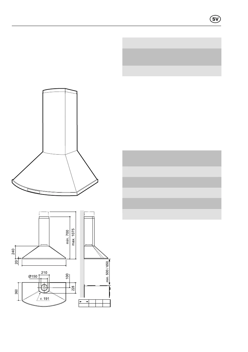 talltrådsfilter. Spisfläkten har fyra hastighe-