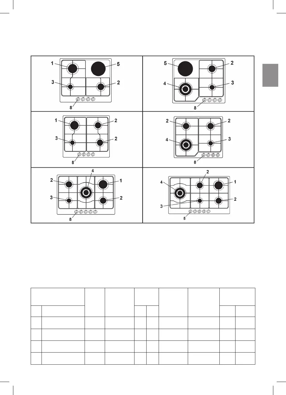 3 Вспомогательная конфорка 1000 Вт 8 Ручка управления конфорки