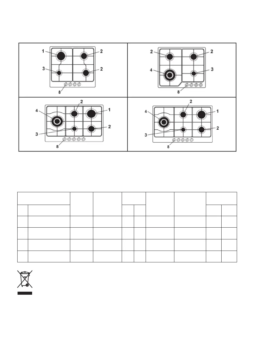 2 Bruciatore semirapido di 1750 W 8 Manopola comando bruciatore