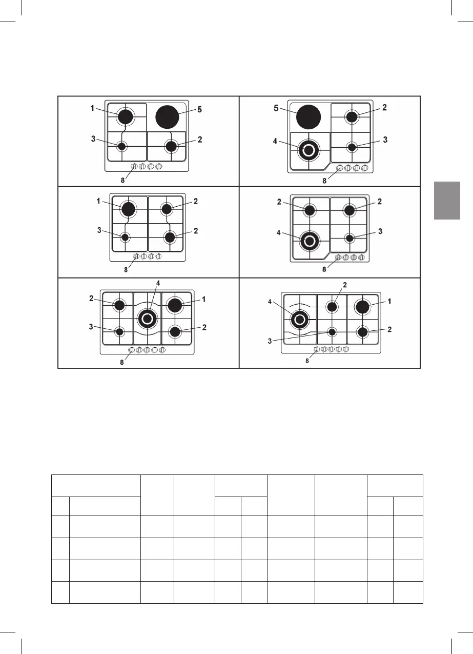 1. Palnik szybko gotujący 3000 W 4. Palnik potrójna korona 3800 W