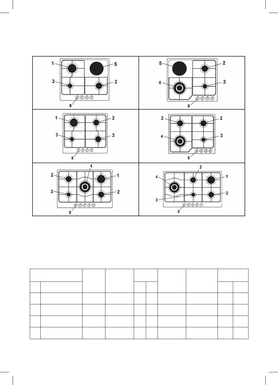 3 Bruciatore ausiliario di 1000 W 8 Manopola comando bruciatore