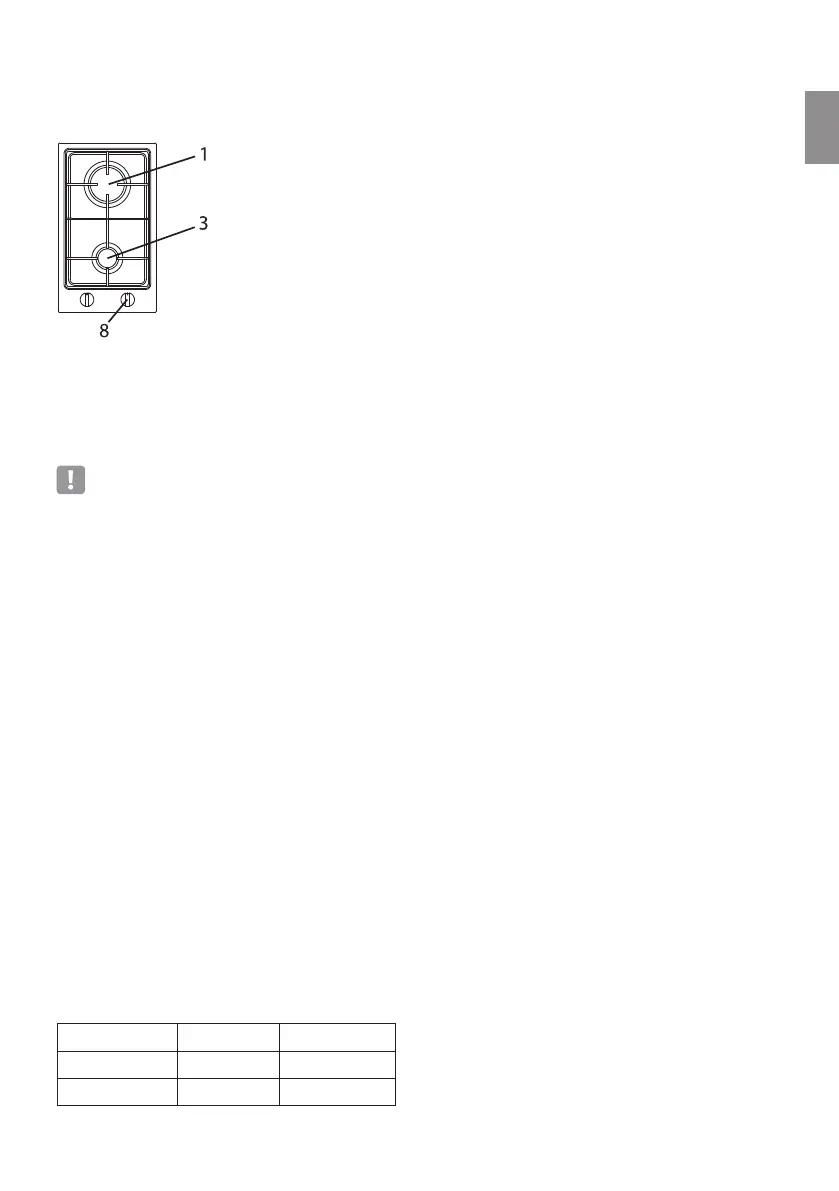 the burner potential (see the following table), so as to avoid that the ame goes out of the pot bottom ( g.1).