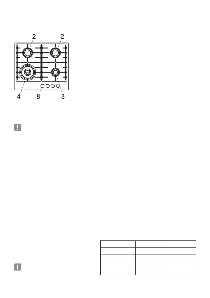 конфорки использовать кастрюли соответствующего диаметра (см. нижеследующую таблицу). Пламя не долж-