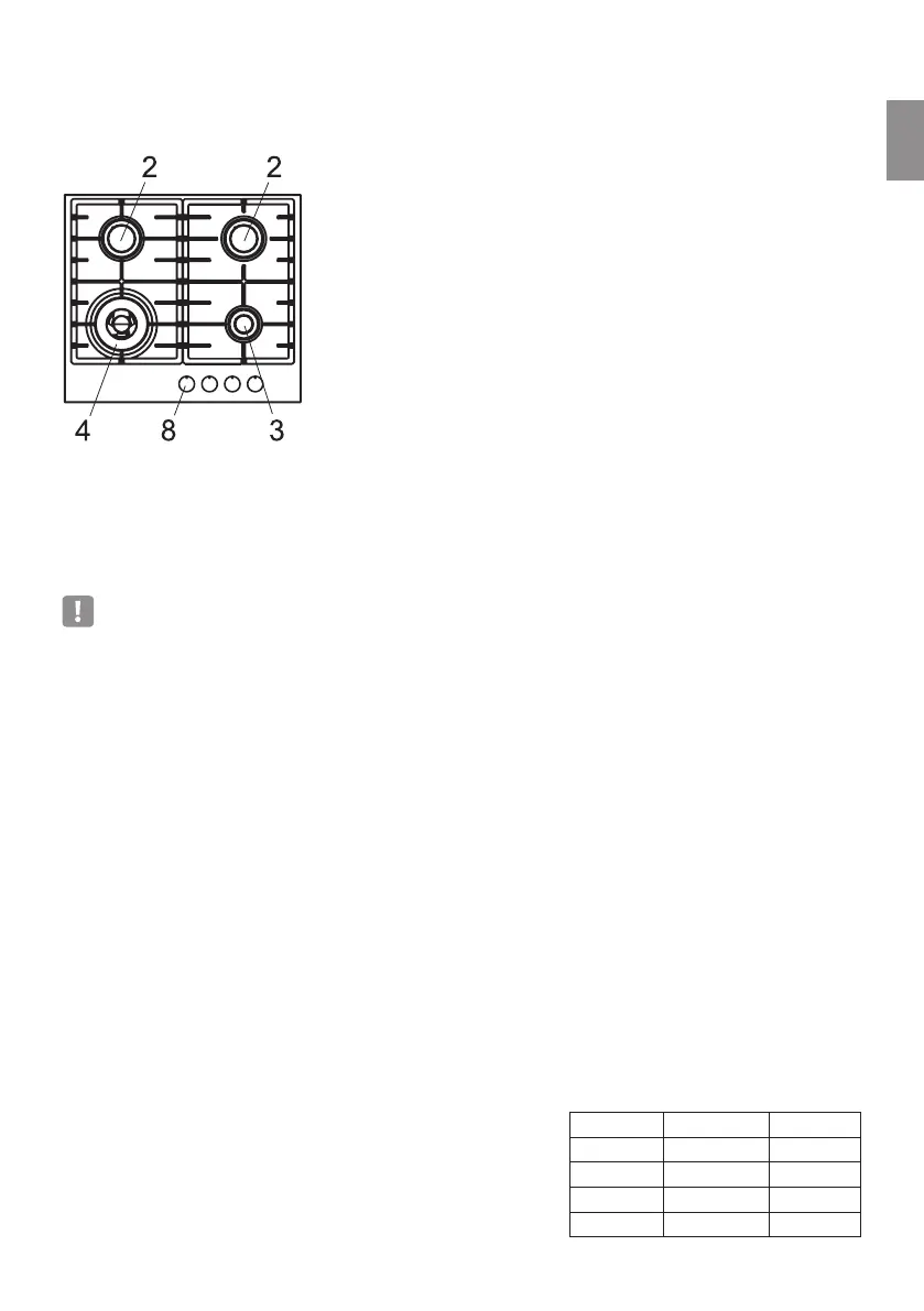 the burner potential (see the following table), so as to avoid that the ame goes out of the pot bottom ( g.1).