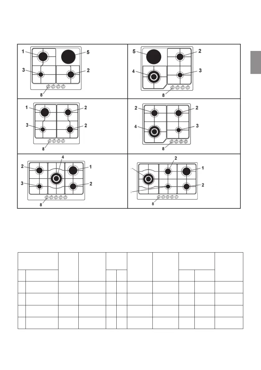 3 Вспомогательная конфорка 1000 Вт 8 Ручка управления конфорки
