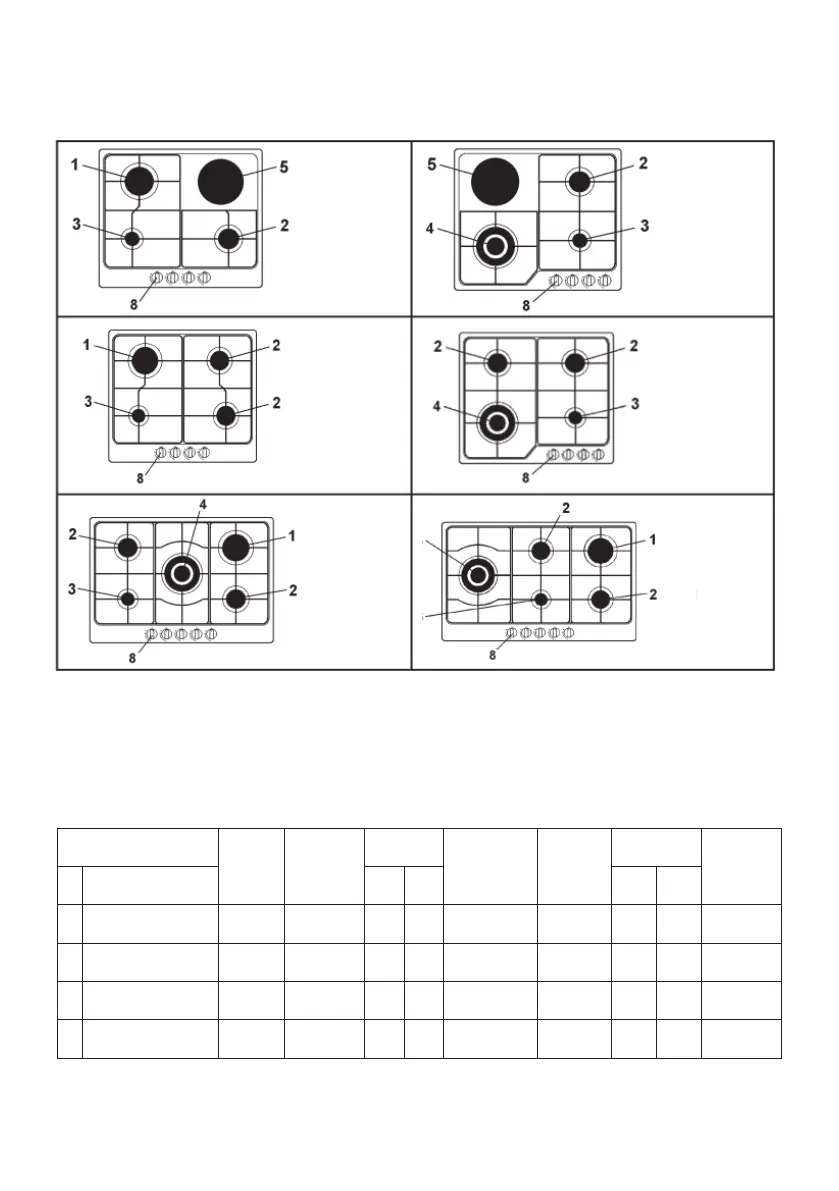 2. Пальник стандартний - 1750 Вт 5. Електрична конфорка Ø 145, 1500 Вт