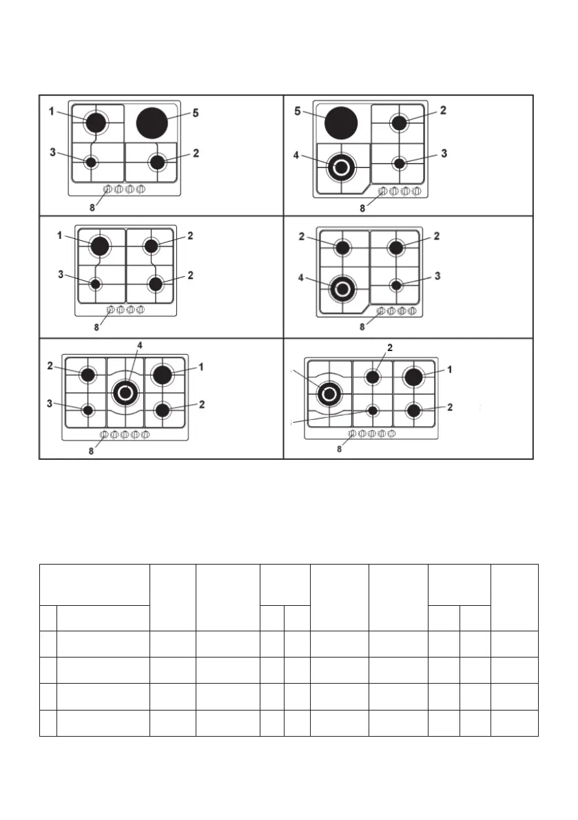3 Bruciatore ausiliario di 1000 W 8 Manopola comando bruciatore