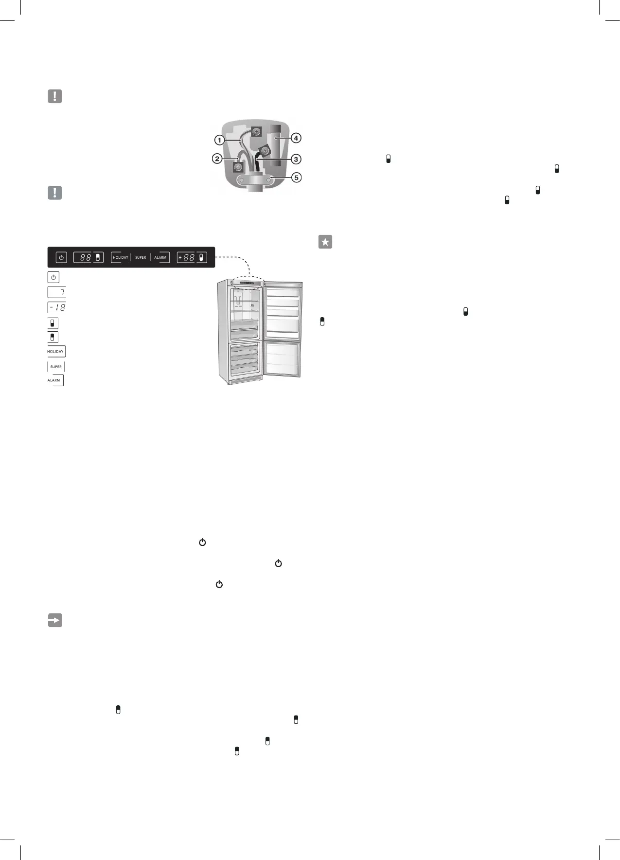 Можна вимкнути лише холодильне відділення, натиснувши на символ (