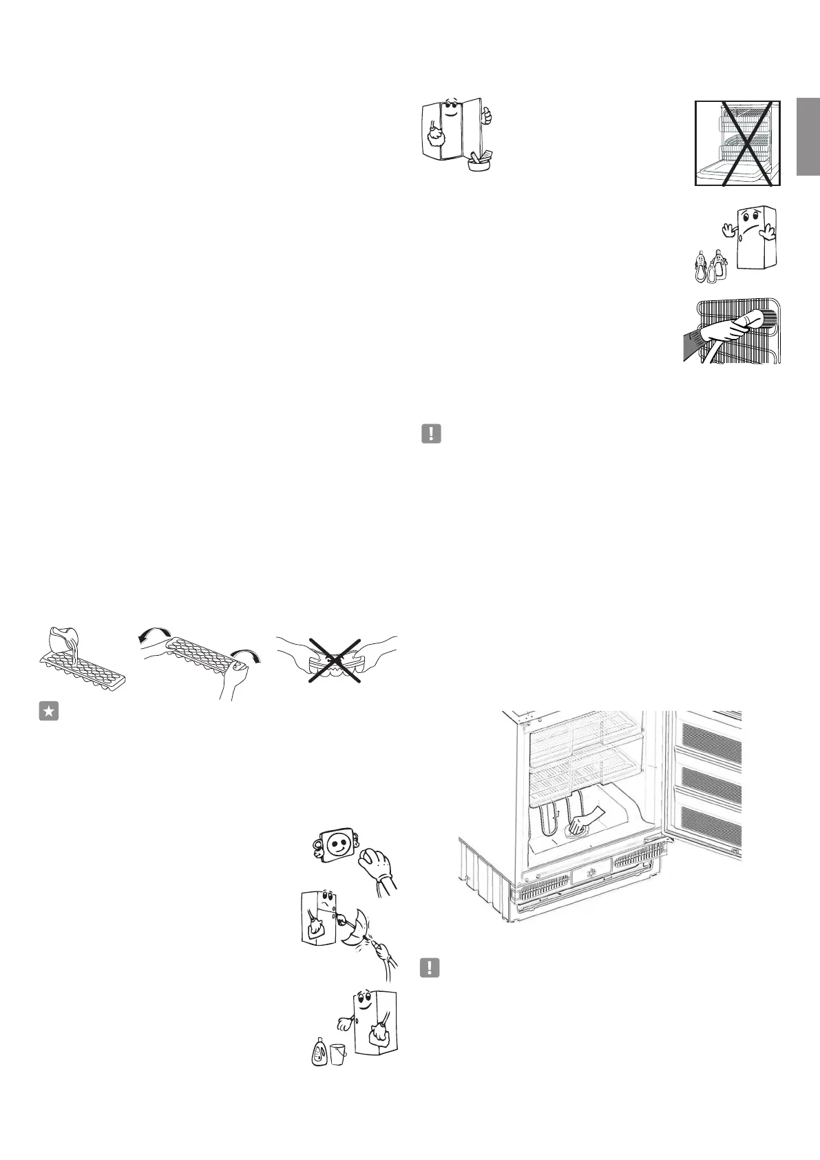 • Leave the door open to accelerate defrosting. Remove the defrost water