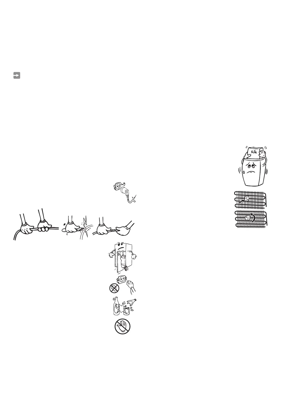 • Не накрывайте и не завешивайте корпус и верхнюю часть морозильни-