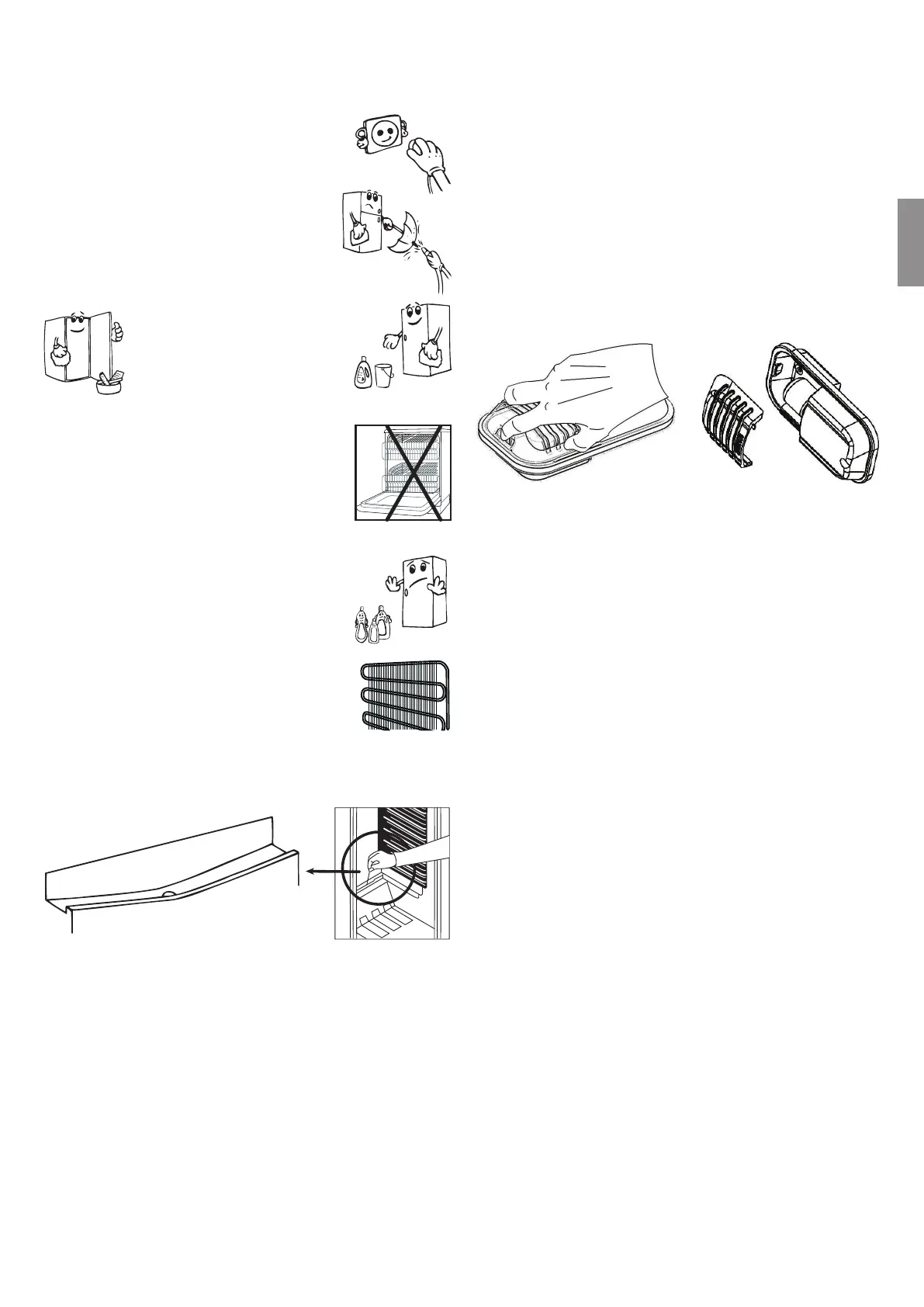 • Не помещайте в холодильник горячие продукты или жидкости, от ко-