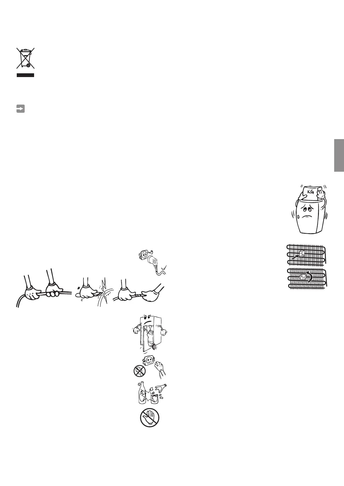 • Lodówka nigdy nie powinna być używana na zewnątrz lub stać na deszczu.