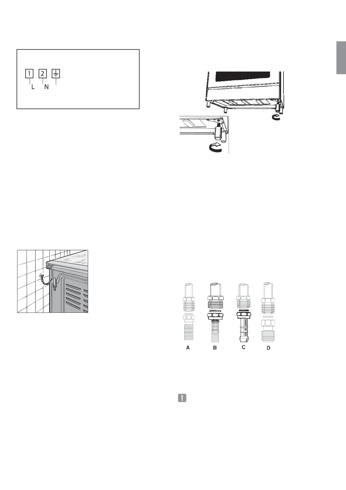 CONNECTING TO THE MAINS INSTALLATION OF THE FEET