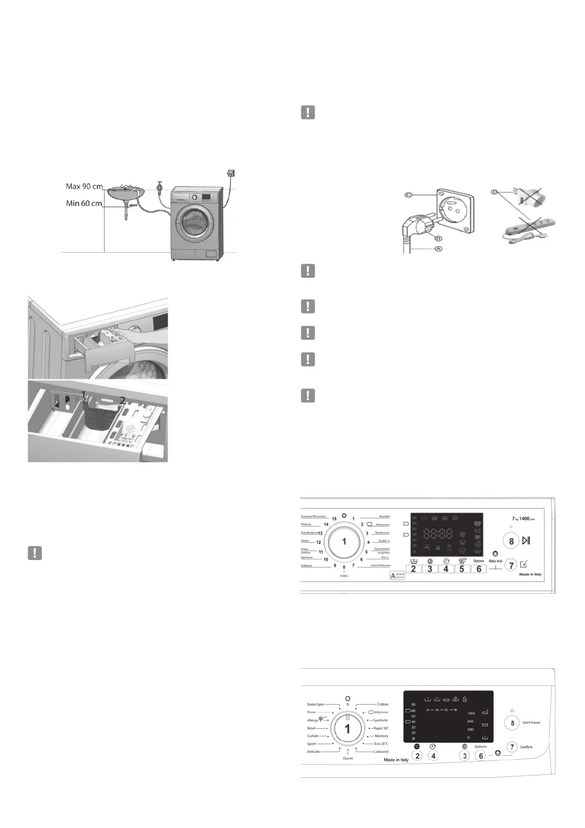 Зливний шланг повинен знаходитися на висоті від 60 см до 90 см від підлоги.