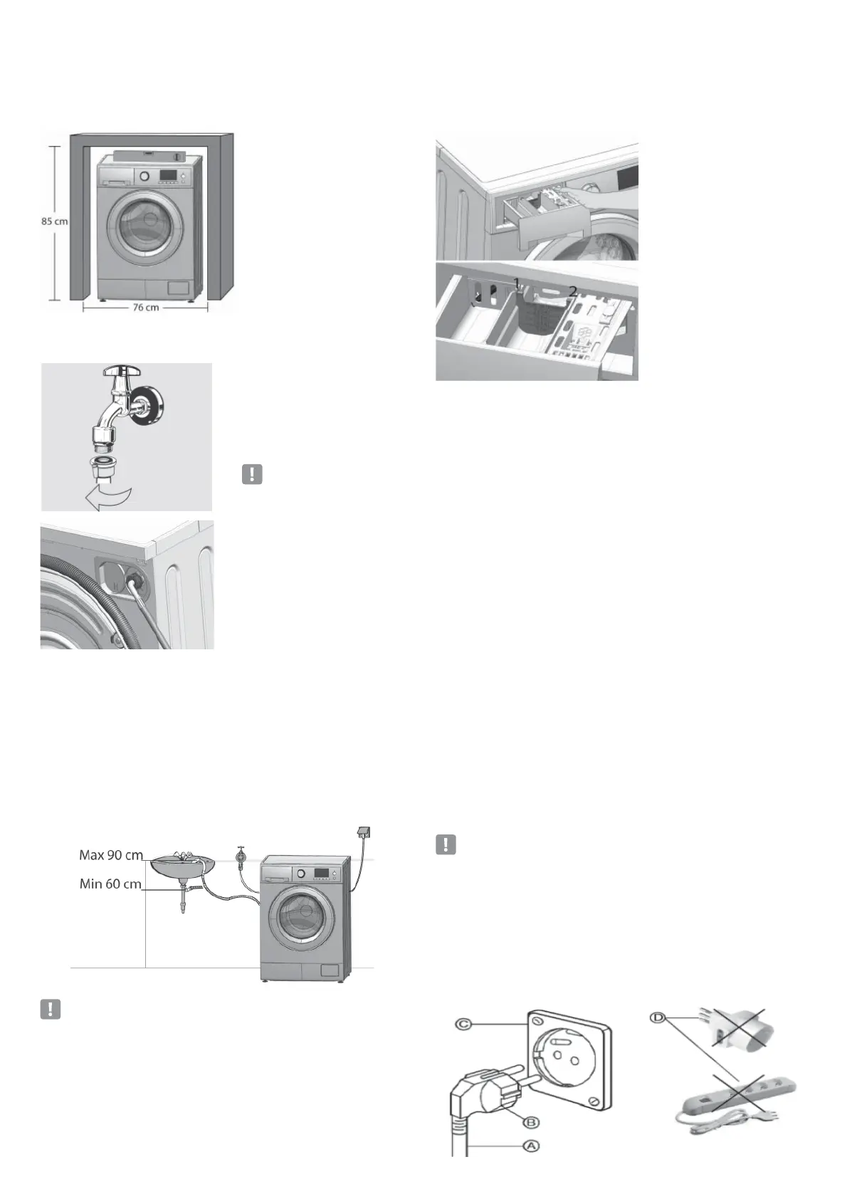 N.B. It is not recommend using extension on the drain hose.