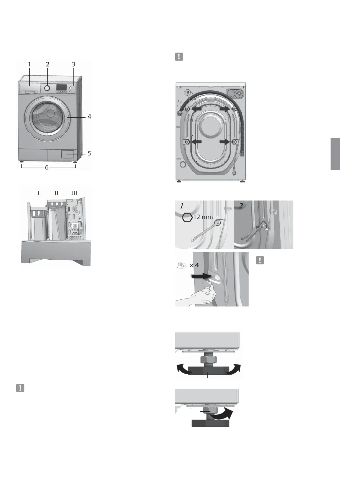 UWAGA: Należy bezwzględnie wymontować śruby blokad transporto-