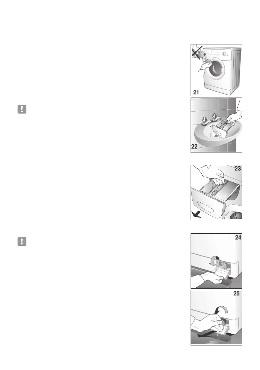 Для этого выньте контейнер для стирального порошка и помойте его под струей воды
